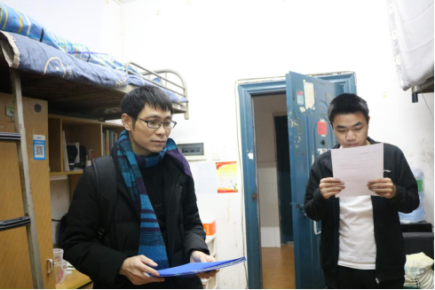为更好地了解同学们的宿舍生活情况,加强其思想教育,提高安全意识,11月30日晚,材料与环境工程学院党总支书记谭峰亮,副书记陈佩君以及材环院全体班主任在学生干部的陪同下前往学生寝室开展思想教育及安全教育工作。