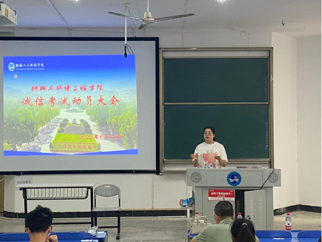 为树立学生诚信为本的道德观念,营造积极向上的考试气氛,进一步推进学风建设,引导学生诚信考试、诚信做人。材料与环境工程学院于2022年6月13日中午在致远楼120教室召开了期末考试诚信动员大会。参加会议人员有学院党总支副书记陈佩君、副院长胡继林,各班级班长、团支书、学习委员为代表的主要干部,会议由辅导员伍荻老师主持。