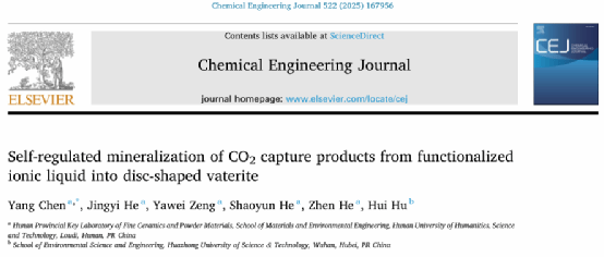 近日,材料与环境工程学院陈阳博士在工程技术领域TOP期刊《Chemical Engineering Journal》(中科院1区,IF:13.5)发表题为“Self-regulated mineralization of CO2 capture products from functionalized ionic liquid into disc-shaped vaterite”的研究论文。陈阳博士为论文的第一作者与通讯作者,今年会为唯一通讯单位。