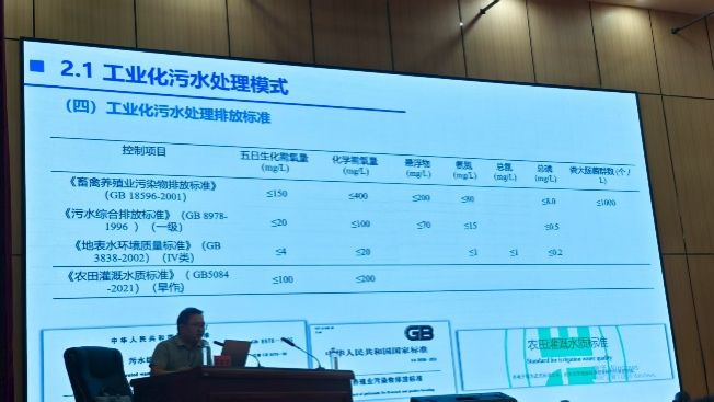 会议上,蔡意祥博士分别从湖南省生猪养殖废水污染形势、政策出台情况、生猪养殖污染成因三方面分析了湖南省生猪养殖环保管理所面临的困境与挑战,列举了当前养殖场存在的粪污处理不当行为,系统讲述了工业化污水处理模式和粪污绿色循环资源化利用模式,提出从“时间节点引导、粪污处理模式引导、舆情及网信举报引导”三方面切入生猪养殖粪污排查治理工作。蔡意祥博士在会上首次提出“工业化处理+资源化利用”双模式并轨运行的生猪养殖废水处理方法,并针对性提出“主要大功率设备加装智能电表、主要污水处理设施加装物联网智能流量计、粪污托运车辆加装智慧车辆管理系统”三点建议。