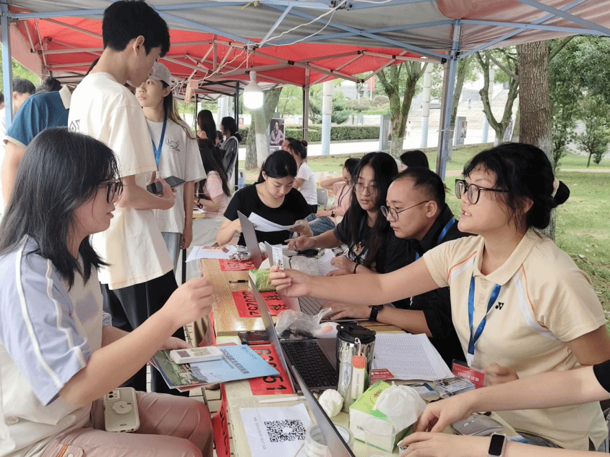 在工作人员的精准引导下,新生们有条不紊地完成线上报到确认、校园卡申领、宿舍入住登记等流程,每一个环节都高效便捷。从初入校园的贴心指引到手续办理的细致协助,全程周到的服务让新生与家长深切感受到学院的温暖与关怀,迎新现场洋溢着热烈而温馨的氛围。
