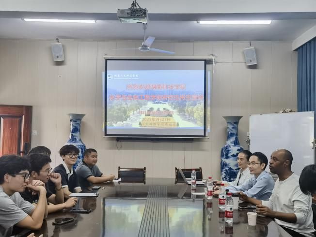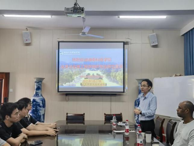 2025年9月27日,湖南科技学院化学与生物工程学院院长覃佐东一行三人莅临我院开展硕士研究生招生宣讲,宣讲会于多闻楼410举行,材料与环境工程学院学院院长文瑾、副院长陈红军、就业专干刘晗及学院有考研意向的学生共同参加此次宣讲。