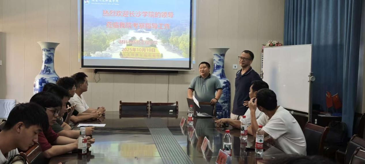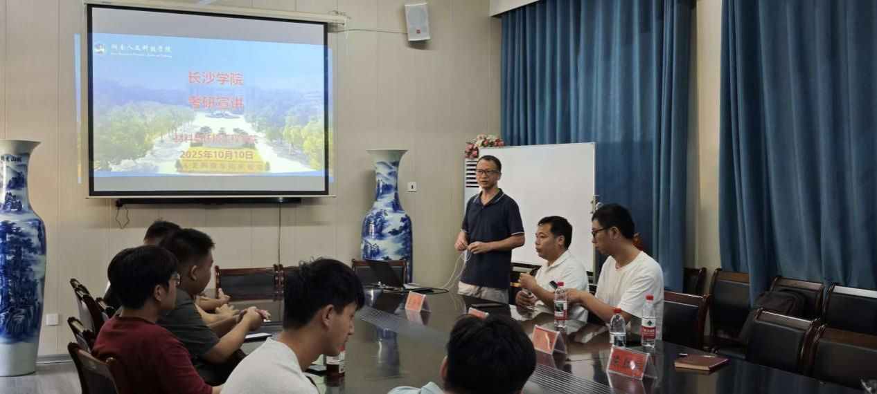 2025年10月10日上午,长沙学院教授陈晗一行二人莅临材料与环境工程学院,在多闻楼410会议室开展研究生招生宣讲,材料与环境工程学院副书记王新辉、副院长陈红军及学院有考研意向学子参加此次会议。