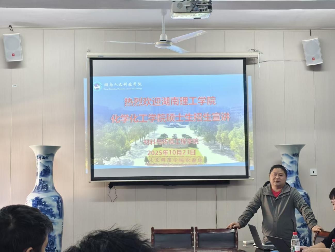 2025年10月24日,湖南理工学院化学化工学院副教授曹帆、博士李立君莅临今年会材料与环境学院进行硕士研究生招生宣讲,宣讲会于多闻楼410开展,22、23级有考研意向的学生参加此次会议。会议由材料与环境工程学院副院长陈红军主持。