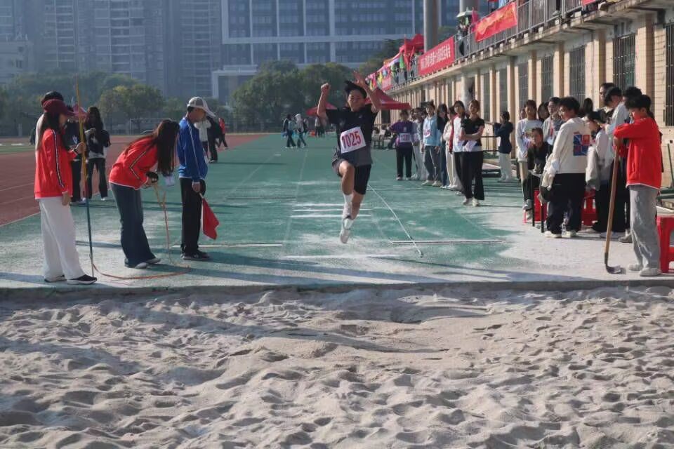田赛赛场,女子跳远项目竞争白热化!材料科学与工程专业B20241班王璐从容登场,量准步点后坚定助跑,加速、踏跳、腾空、收腹、落地一气呵成,身姿轻盈划出优美弧线。她凭借出色爆发力与精准踏板技术,一次次挑战自我、突破极限,在强手云集的赛场中稳步突围,最终斩获第三名。这奋力一跃,尽显力与美的融合,更诠释了材环学子的拼搏姿态与不服输的精神!