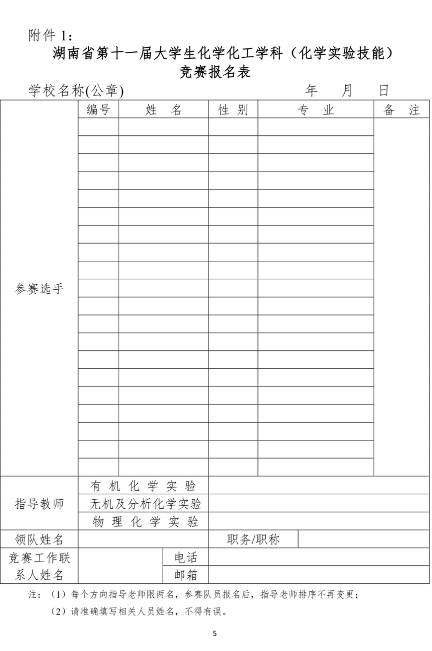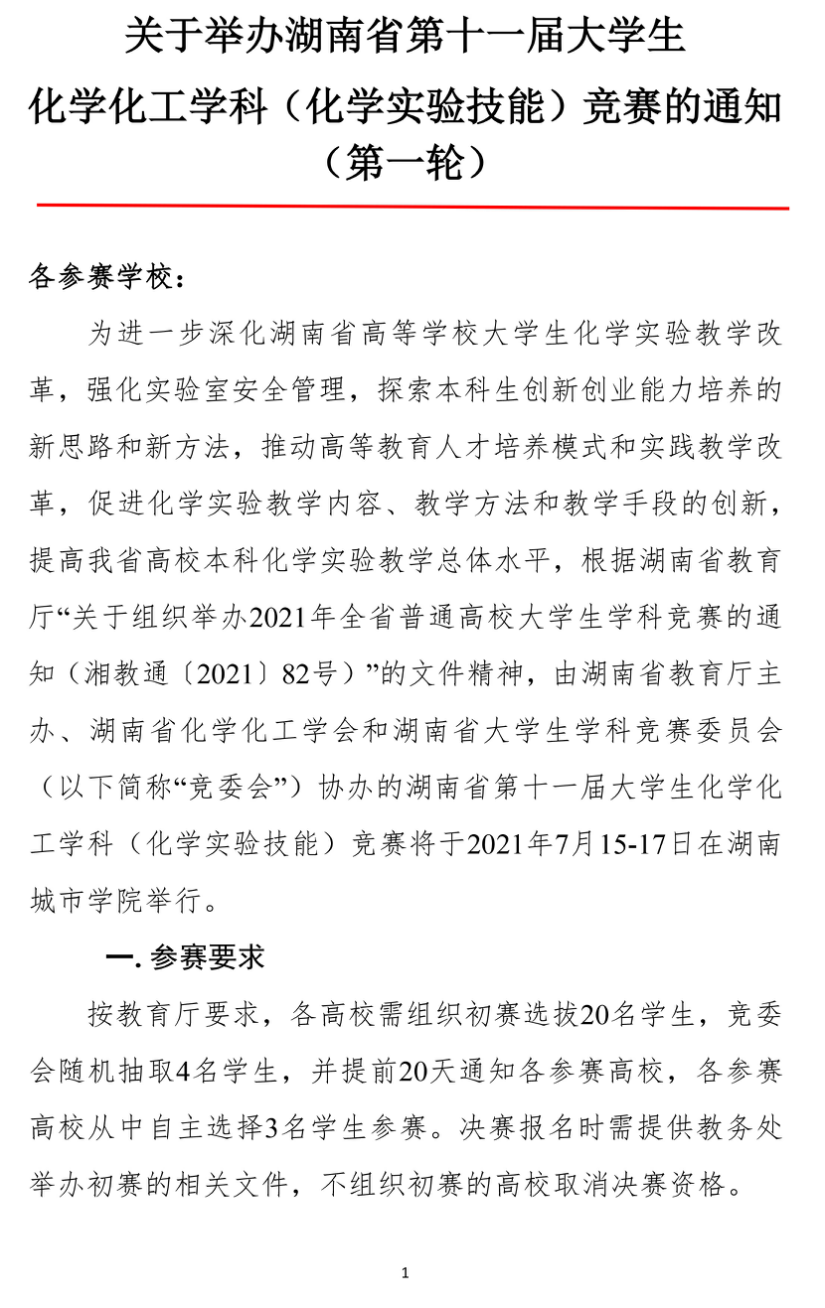 湖南省第十一届大学生化学化工学科竞赛通知(化学实验技能竞赛)