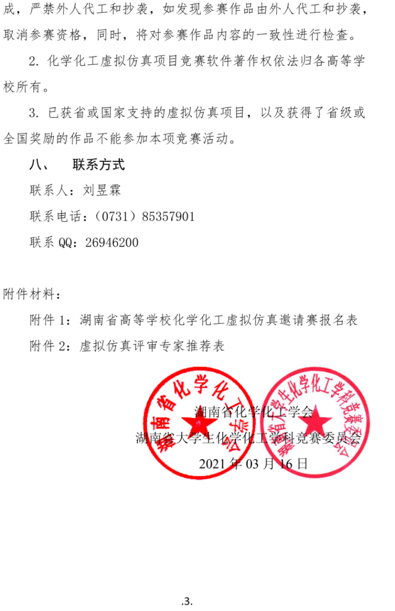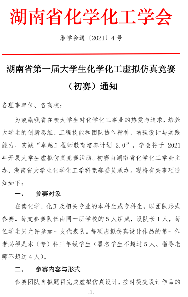 湖南省2021年大学生竞赛通知(创新作品、化工设计、虚拟仿真)