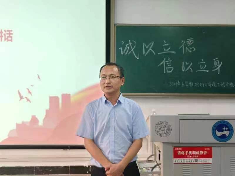 2024年6月14日,材环院在致远楼409召开了2024年上学期期末诚信考试动员大会。材料与环境工程学院党总支书记钟勇、学工办主任朱舒腊、团总支书记李璐玢、辅导员何欢老师以及全体班长、学委和团支书参会。