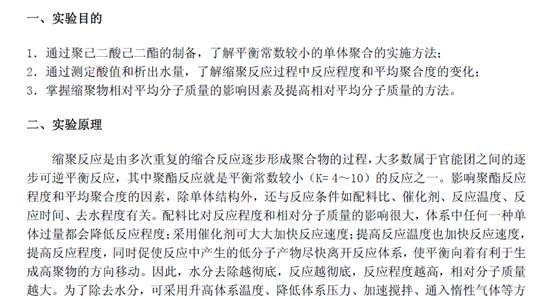 | 聚已二酸已二酯的制备及分子量测定…………………………