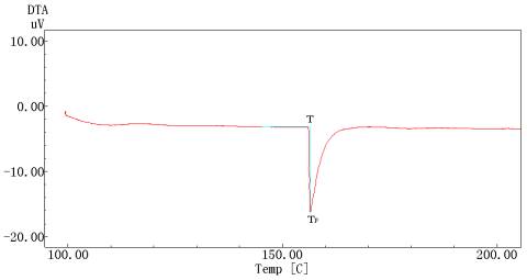 样品和热惰性的参比物分别放在加热炉中的两个坩埚中,以某一恒定的速率加热时,样品和参比物的温度线性升高;如样品没有产生焓变,则样品与参比物的温度是一致的(假设没有温度滞后),即样品与参比物的温差DT=0;如样品发生吸热变化,样品将从外部环境吸收热量,该过程不可能瞬间完成,样品温度偏离线性升温线,向低温方向移动,样品与参比物的温差DT<0 ;反之,如样品发生放热变化,由于热量不可能从样品瞬间逸出,样品温度偏离线性升温线,向高温方向变化,温差dt>0。上述温差DT(称为DTA信号)经检测和放大以峰形曲线记录下来。经过一个传热过程,样品才会回复到与参比物相同的温度。