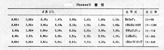 每一行中八根强线的d值是按相对强度从大到小排列的。但强度测量有时误差较大,这将影响到检索。如,当三强线中有两线强度差小于25%,可能导致三强线次序不同。因此,将二者皆编入索引,这样同一种物质就有可能在索引中出现两次,甚至三次;