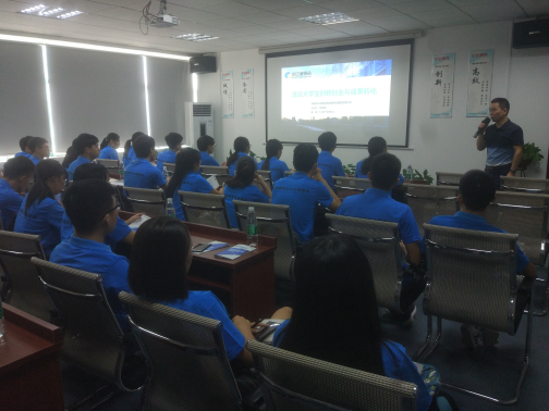 本次实践学习的第三站是湖南华亿高新科技成果转化服务有限公司,董事长杜总不仅是一位成功的创业者,也是各项创新创业大赛的资深评委,他结合自身的经历与学员们分享了创业历程和创新创业大赛的参赛技巧。