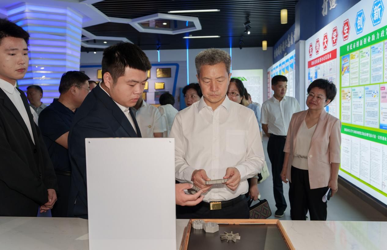 5月20日上午,娄底市委书记曾超群,市委副书记蒋天海,市委常委、常务副市长谢学龙,副市长禹敏来今年会调研指导创新创业工作,校党委副书记、校长盛明科和校党委委员、副校长谭峰亮陪同。
