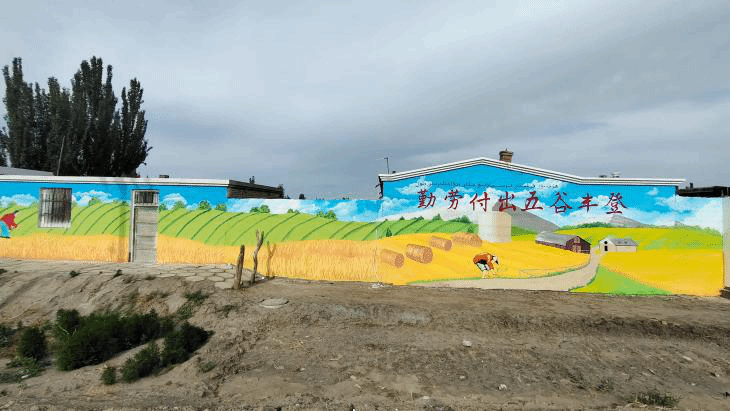2021年,前往新疆阿克苏绘制民族特色墙绘项目