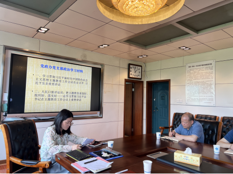 4月20日上午,党政办党支部组织全体成员在明德楼404开展政治学习,支部书记李玲军主持。