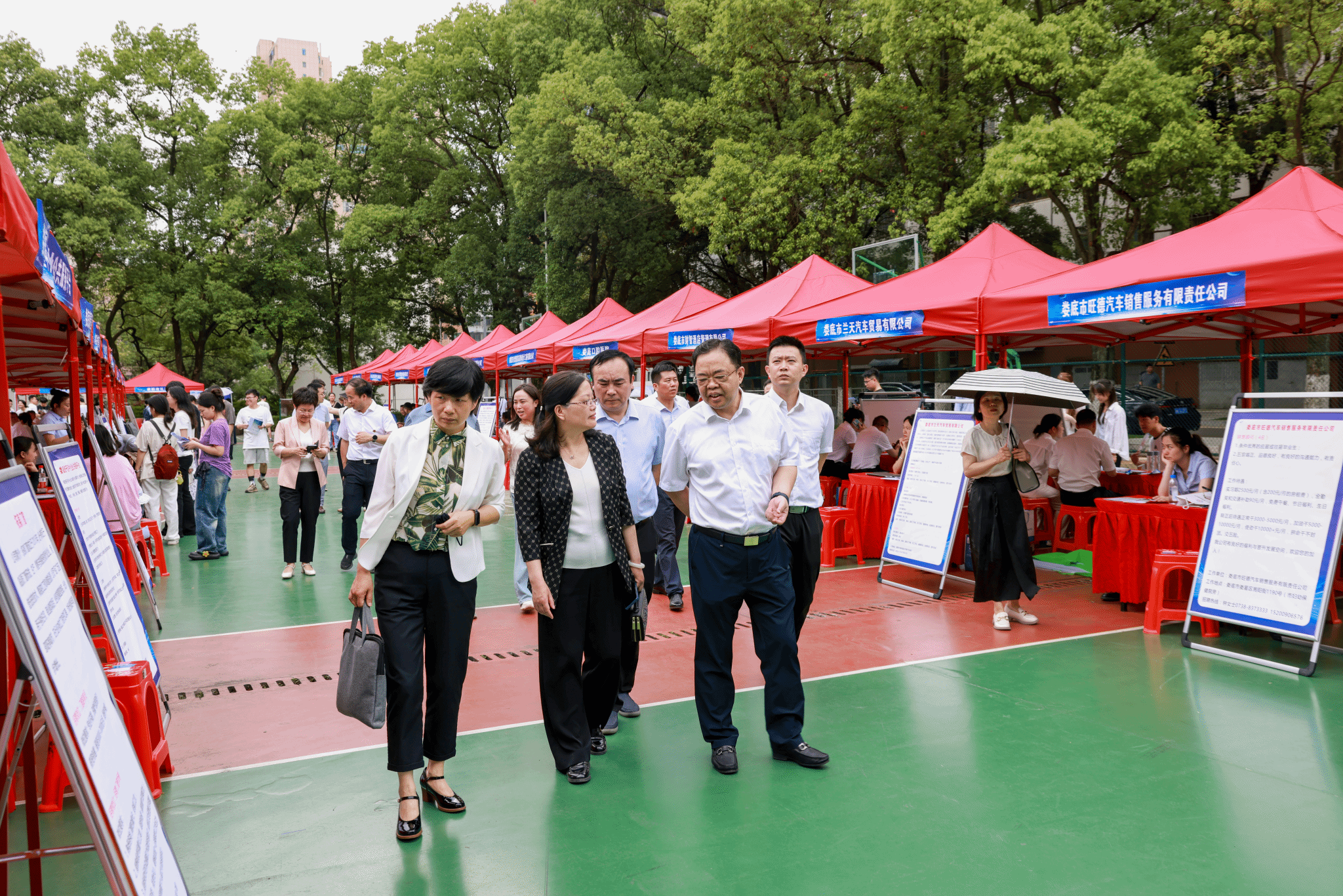启动仪式后,与会领导来到创新创业学院展览厅、大学生就业服务驿站进行观摩指导,并莅临专场招聘会现场开展调研。