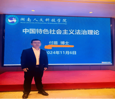 11月6日上午,法学院付盾博士受邀为高警局娄底支队骨干民警法制培训班授课。授课的主题是中国特色社会主义法治理论,付盾博士围绕法治的一般原理、我国法治发展历程与中国特色社会主义法治理论的内涵、构成和习近平法治思想等内容,结合法治政府建设和依法行政实践进行了系统阐述。