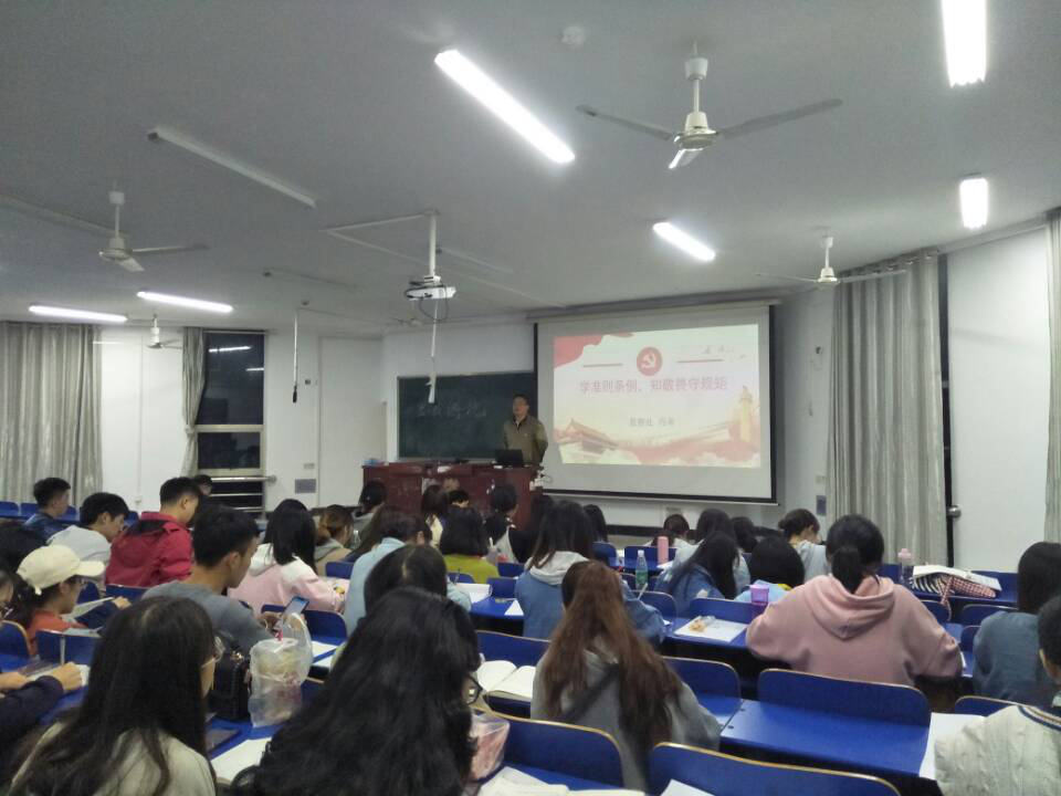 2019年11月7日晚,法学院联合数金学院、文学院和马克思学院在致远楼22举办了党员发展对象培训班第五讲,主题为关于新形势下党内政治生活的若干准则,主讲人为马克思学院张得才书记。共有54名发展对象参加本次课程。