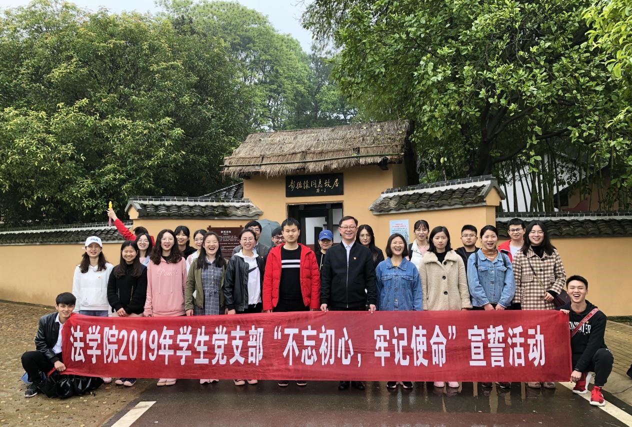 2019年4月14日,法学院第一、第二学生党支部部分学生党员来到彭德怀故居,开展“不忘初心,牢记使命”党员宣誓主题党日活动。参加活动的有法学院党总支书记尹钟宏,学生支部书记宋元烨、高翔等。