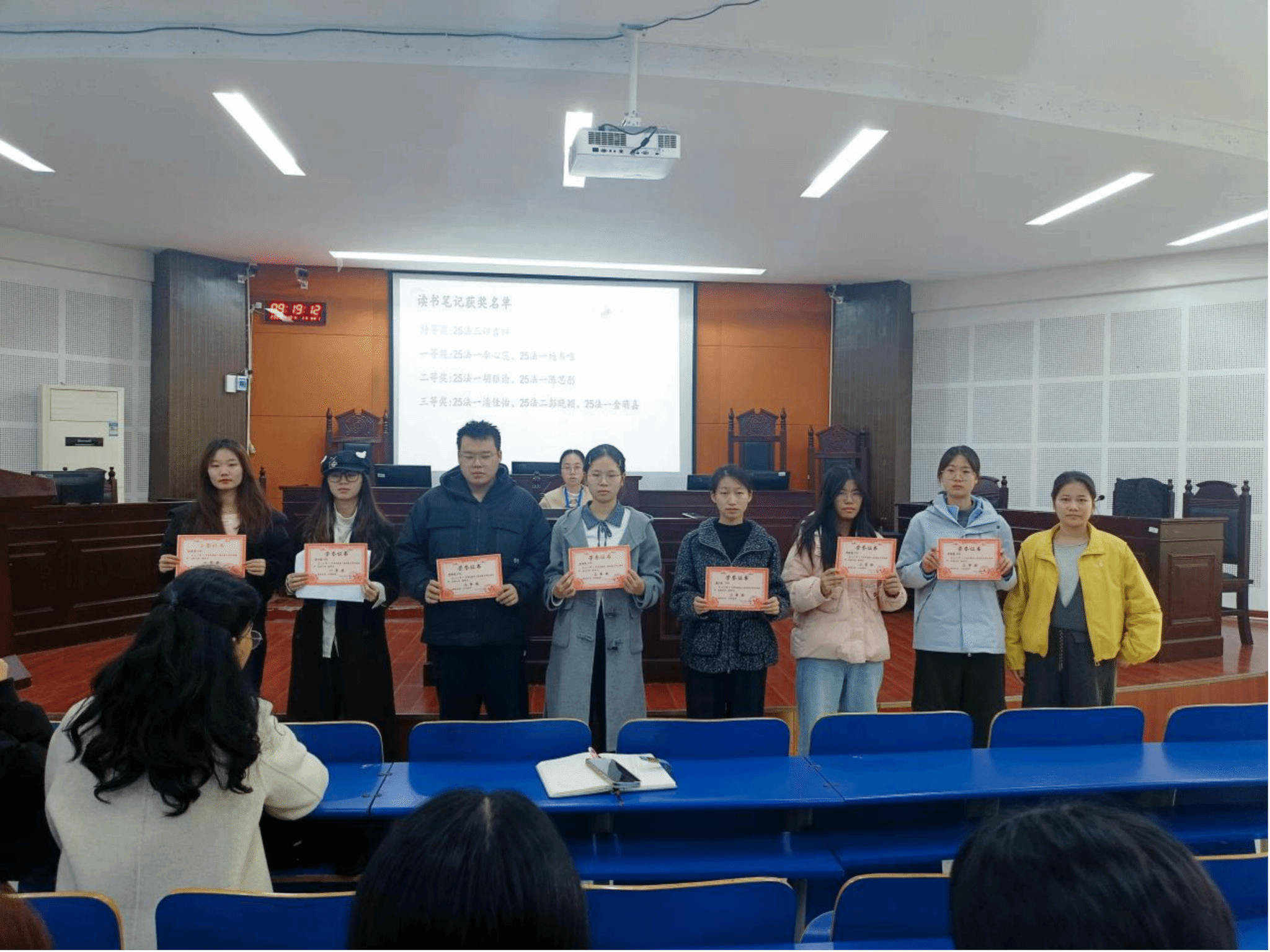 党总支副书记邓南南以“学习之问”为引,深入阐述了治学精神与法学素养的内在联系,鼓励全体同学以获奖者为榜样,坚守法治信仰,锤炼专业能力,努力成长为德法兼修的高素质法治人才。
