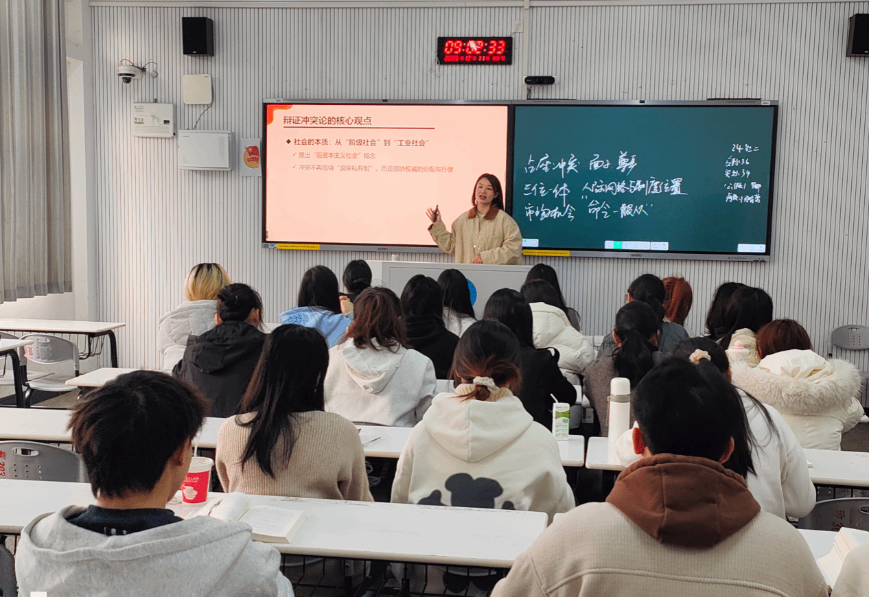 2025年12月11日上午,法学院教师刘惠婷在致远楼204教室举办了《冲突是社会的“病”还是“药”?——一个冲突论者的辩护》学术讲座。院级督导刘小林教师、社工专业部分专任老师全程旁听,并在课后同任课教师就课堂所反应出的实际问题展开探讨交流。