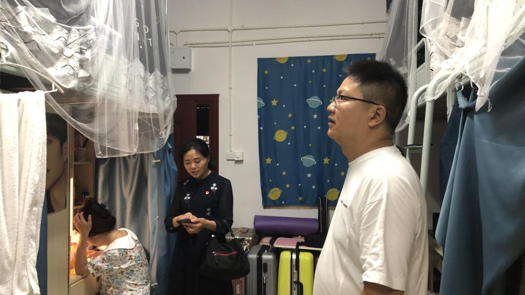 7月5日晚,法学院党总支书记肖兵明,副书记刘景春,辅导员老师宋元烨、孙蔚菁、陈玲及法学院部分班主任老师,在法学院学生会干部的陪同下,对寝室进行了排查。