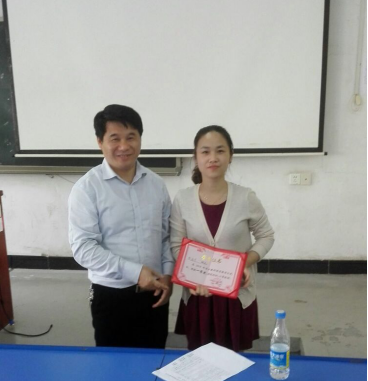 | 教务处处长羊四清教授为理工科组一等奖获得者陈芳老师颁奖 |