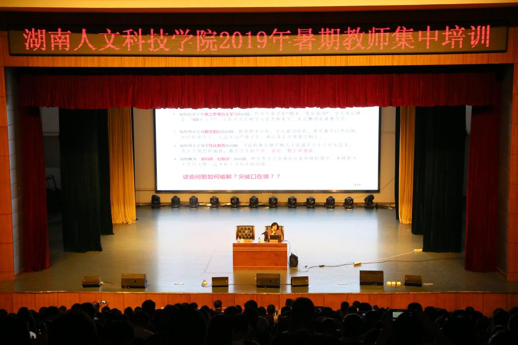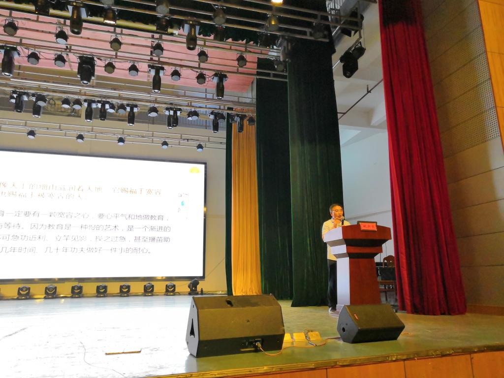 7月16日上午,湘潭大学宋德发教授做了“什么是金课?如何打造金课?——我的理解与探索”的讲座。他从好老师是好演员、好老师是好导演、好老师是好编剧等角度阐述了大学教师如何打造金课,深入分析了专业研究、教案编排、教学研究等对打造金课的重要性,整个讲座幽默、风趣而生动,赢得了教师们的阵阵掌声。