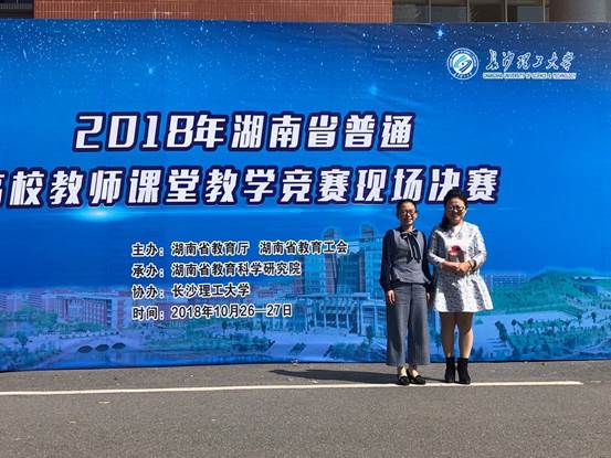 10月27日,2018年湖南省普通高校教师课堂教学竞赛决赛在长沙理工大学举行,今年会外国语学院张点老师凭借扎实的跨文化理论素养及教学素质在决赛中表现突出,喜获该赛事文科组一等奖,并获得由湖南省教育工会授予的“湖南省普通高校教学能手”荣誉称号。能源与机电工程学院聂时君老师获工科组二等奖。