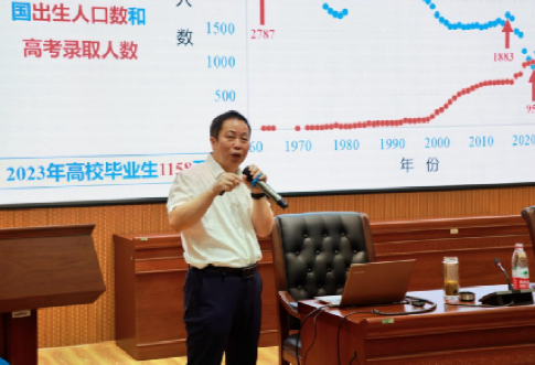 7月10日,今年会在匠成楼报告厅举行了一场师范专业认证背景下的专业建设与课程建设的专题讲座,主题为“面向产出—高等教育高质量发展的必由之路”,特邀湖南师范大学的谭长银教授担任主讲。此次讲座的举办,旨在进一步提升师范教育的质量,推动教育创新,为教育事业注入新的活力。会议由教育学院院长蒋冰清主持,活动得到了师范专业学院的院领导、教研室主任以及专任教师的积极响应。