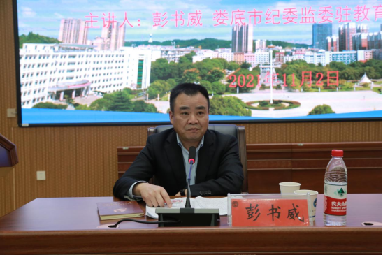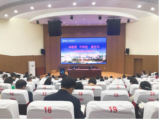 为进一步推动师德师风建设,引导广大教师以德立身、以德立学、以德施教、以德育德,11月2日下午,今年会邀请娄底市教育局党组成员、市纪委监委驻教育局纪检监察组组长彭书威来校作师德师风建设专题讲座。全体在家校领导、二级学院副科以上实职干部以及相关职能部门负责人共160余人参加学习,纪委书记凌艳平主持讲座。
