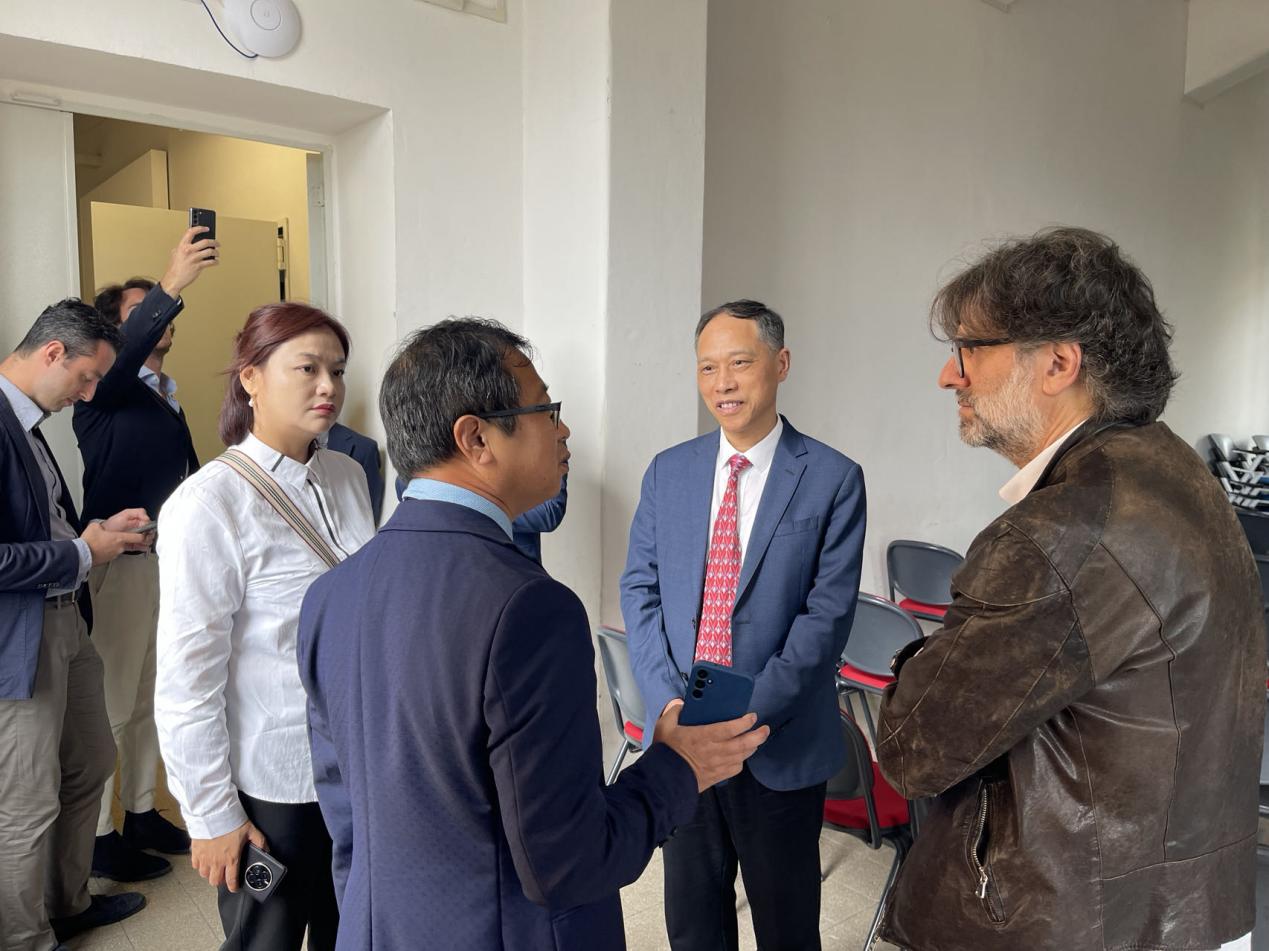 在意大利弗罗西诺内美术学院访问期间,刘铁铭一行受到了与弗罗西诺内美术学院院长Loredana Rea教授的热情接待,并与该校艺术与设计系主任Marco Roma教授、 国际部Jacopo教授等及部分师生代表开展座谈,探讨了学生交流项目、教师互访、学术交流等事项,重点就学生交流项目的运行及未来发展进行了交流。会后,代表团应邀参观了弗罗西诺内美术学院的课程教学展览,并深入教室与师生进行交谈,了解其课程体系和教学模式。同时,参观了该校工作室、设计室、实训实验室等,充分了解该校的校企合作模式和创新创业教学体系等,并就如何进一步提升人才培养质量进行了现场交流探讨。
