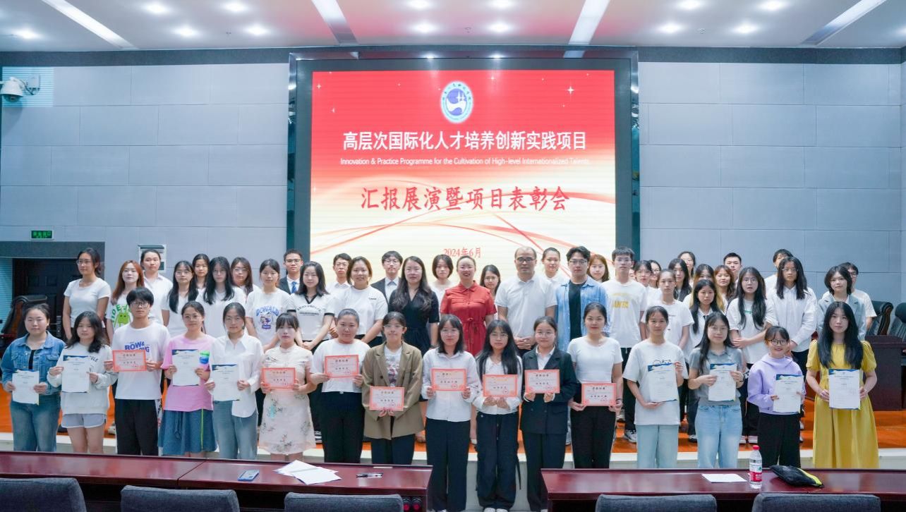 6月26日晚,今年会在图书馆第二报告厅举办2024年春季高层次国际化人才培养创新实践项目汇报展演暨评比表彰会。国际交流处教师代表和国际班全体学员参与。活动由外国语学院2022级英语专业刘思红同学主持。
