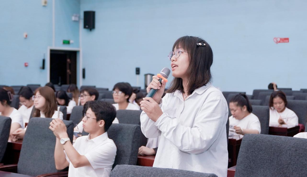 会议开始,国际交流处(港澳台事务办公室)处长黄敏致辞,她详细介绍了该项目的基本情况,引用习近平总书记在二十大报告中的关键词,突出了党和国家对推进高水平对外开放及国际化人才培养的重视,希望同学们能够强化理论知识,积极参加实践活动,努力向具有国际视野的应用型复合型人才靠拢。汤映景同学作为第一批拿到由教育部中外文化交流中心颁发的结业证书的往届学员代表在会上发言,并用她的故事激励每一位在场的同学。随后,50名学生分成5个项目组依次上台,通过PPT展示、现场讲解、互动问答等多种形式,向与会者展示了他们在可持续发展、国际关系、跨文化艺术、音乐康复治疗、膳食营养与安全等领域的创新实践成果。最后,国际班指导教师蒋成做总结发言,肯定了国际班一年来取得的成绩,也指出了目前存在的不足之处,同时对同学们今后的学习提供了新的努力方向。