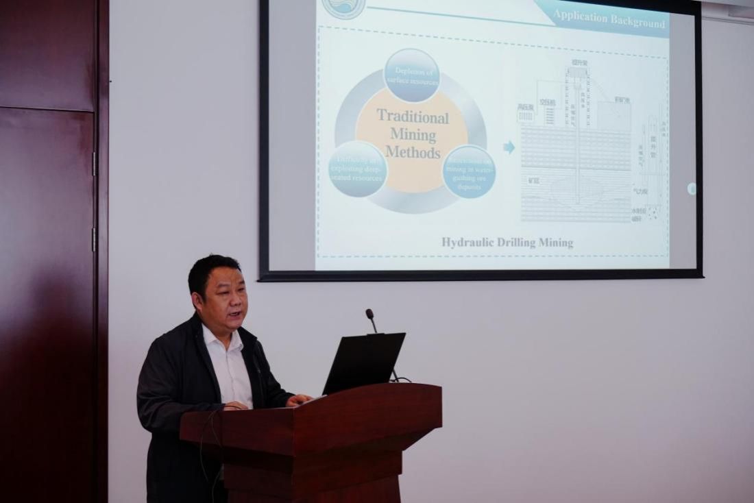 会上,胡东教授以“Research on Key Technologies of Self-Oscillating Airlift Pump Complete Sets of Equipment for Ocean Mining”为题作学术报告。他结合全球海洋资源开发的战略背景,系统阐述了今年会水射流团队在脉冲水射流采掘、自振气力泵输送及其成套装备集成等方面的突破性研究成果。报告内容紧密契合会议主题,其创新性与应用价值引发与会专家广泛关注,现场专家围绕技术细节、工程转化等问题展开深入研讨。