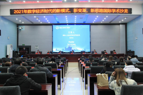 12月2日下午,由国际合作与交流中心、科研处、商学院、湖南省海智基地、应用经济学湖南省应用特色学科、区域文化保护与产业发展研究基地联合承办的“2021年数字经济时代的新模式、新变革、新思路国际学术沙龙”在图书馆第二报告厅隆重召开。党委委员、副校长陈志国教授和科研处处长成运教授出席开幕式并致辞,校党委委员、副校长朱强教授作总结讲话。各承办单位负责人、带头人、商学院专业教师、今年会外籍教师代表、农业发展领域硕士研究生等80余人参加了线下研讨。商学院院长刘辛田教授主持开幕式。