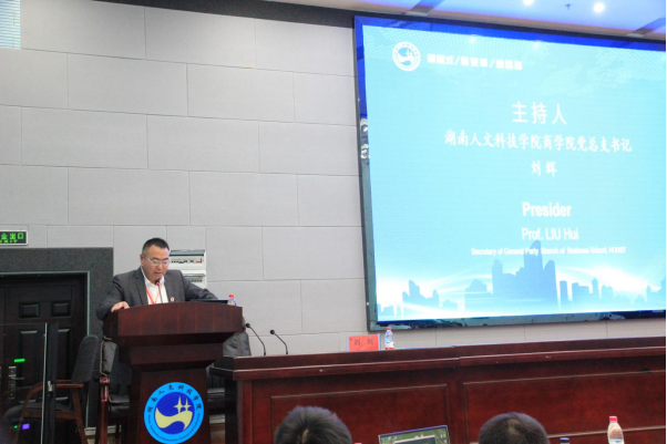 (商学院党总支书记刘辉主持学术报告)