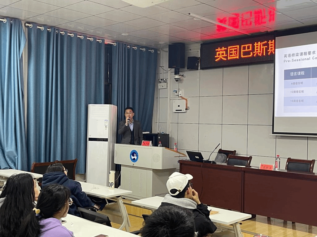 讲座中,王广胜图文并茂地向师生介绍了英国巴斯的风土人情、巴斯斯巴大学的学科及专业设置、学校授课与教学方式、大学为留学生提供的各项支持服务、学生宿舍、升学途径等,并就学生在留学申请、专业选择、海外生活等方面产生的疑问进行了详细解答。最后,王广胜播放了今年会往届学生在巴斯斯巴大学学习生活的视频集锦和经历分享,勉励学生努力学习奋斗,不断提升自己的专业能力与综合素质。