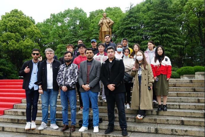 活动的第一站,大家来到了橘子洲头瞻仰毛主席青年雕像,通过讲解,外国专家们纷纷感叹于毛主席对革命事业的热爱与贡献,仿佛自己也能体会到毛主席当年站在江头望湘江北去的豪情壮志。在湖南省博物馆,马王堆汉墓陈列、三湘历史陈列等一系列展览让外国专家和留学生们真实地感受到了一眼千年,博古藏今的震撼,短暂的参观时间让大家流连忘返。活动的最后一站前往了刘少奇故居,讲解员介绍了刘少奇充满坎坷又辉煌的生平经历,外国专家和留学生赞扬刘少奇崇高品质的同时也给我们上了一次生动的党课。