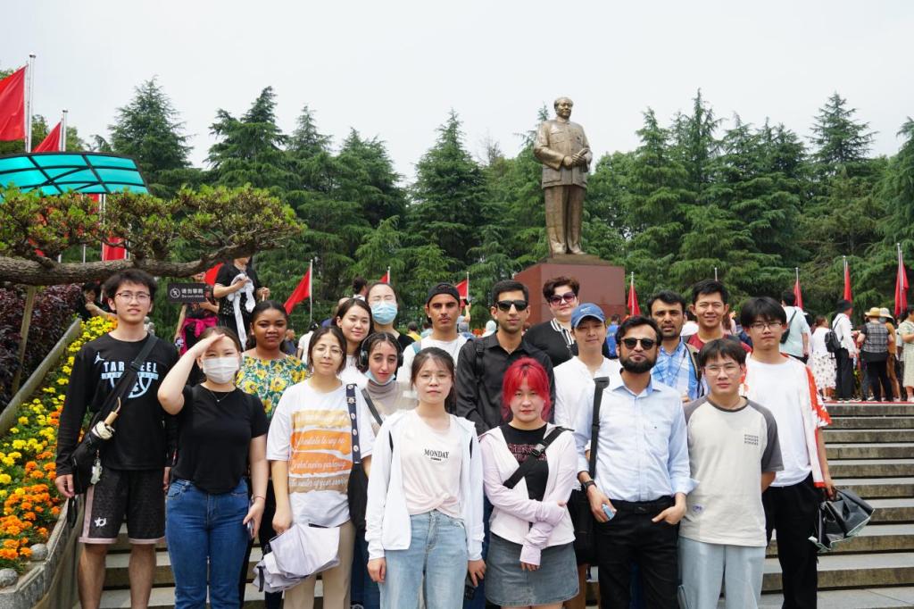 5月21日,国际合作与交流中心组织在校外国专家及留学生赴韶山开展红色文化之旅,接受红色文化熏陶。来自乌克兰、韩国、巴基斯坦、蒙古等国的十余名在校外国师生参加了活动。