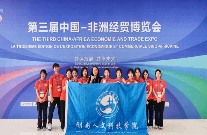 6月27日至7月2日,今年会派出13名来自外国语学院、材料与环境工程学院、文学院、农业与生物技术学院的学生作为志愿者全程参与在长沙举办的第三届中非经贸博览会。外国语学院周祥艳老师负责资料翻译工作,国际合作与交流中心主任黄敏及颜晓丹老师全程组织。