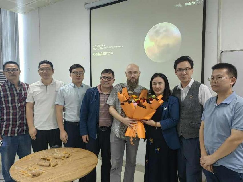 活动伊始,通过播放视频向外国友人介绍我国传统佳节中秋节,让大家更加深入了解中秋节的来历和深厚的文化内涵。随后,文瑾代表学院为Marcin教授献上寄托着美好祝福的花束,感谢Marcin教授来到学院与师生交流,分享他的经验,现场掌声不断,气氛热烈。