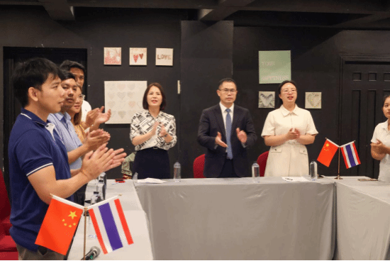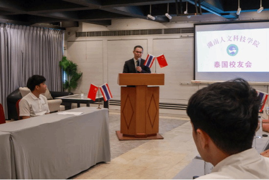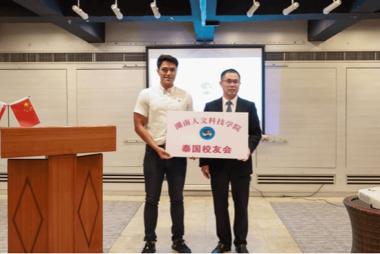 在泰国芭提雅,访问团与泰国校友代表举行了座谈会,在海内外校友之间、校友与母校之间的交流与合作,以及优秀海外校友代表回湘回娄创业等方面进行了深入探讨与交流,并参观了校友企业及校友合作企业。期间,与泰方企业签订了合作备忘录,并成立了今年会首个海外校友会——泰国校友会。成立大会上,主持人刘思睿代表泰国校友致欢迎词,感谢母校领导老师不远万里来泰国指导校友会成立;刘莉向大会的召开表示祝贺,并宣读了《关于同意成立今年会泰国校友会的批复》;陈勇为泰国校友会授牌,泰国校友会会长泰宝代表校友会接牌。陈勇对精心筹备泰国校友会成立的校友们致以衷心的感谢,介绍了母校高质量发展取得的成就,阐述了不断为校友发展蓄势赋能的学科专业和师资队伍优势。他指出,泰国校友会的成立,是学校发展历程中的一件大事喜事,是加快推进国际合作教育的有力举措,必将架起海内外校友之间交流、合作与共赢的桥梁,也将托起海外校友与母校之间情怀激活的平台,更将示范引领海外校友会的发展与壮大。他希望,校友们发扬“谋近以致远、养根而俟实”的校训精神,在各自的领域展翅翱翔,建功立业,共同筑就人文学子海外荣光,共同唱响中泰两国友谊、交流与合作的“命运共同体”之歌。