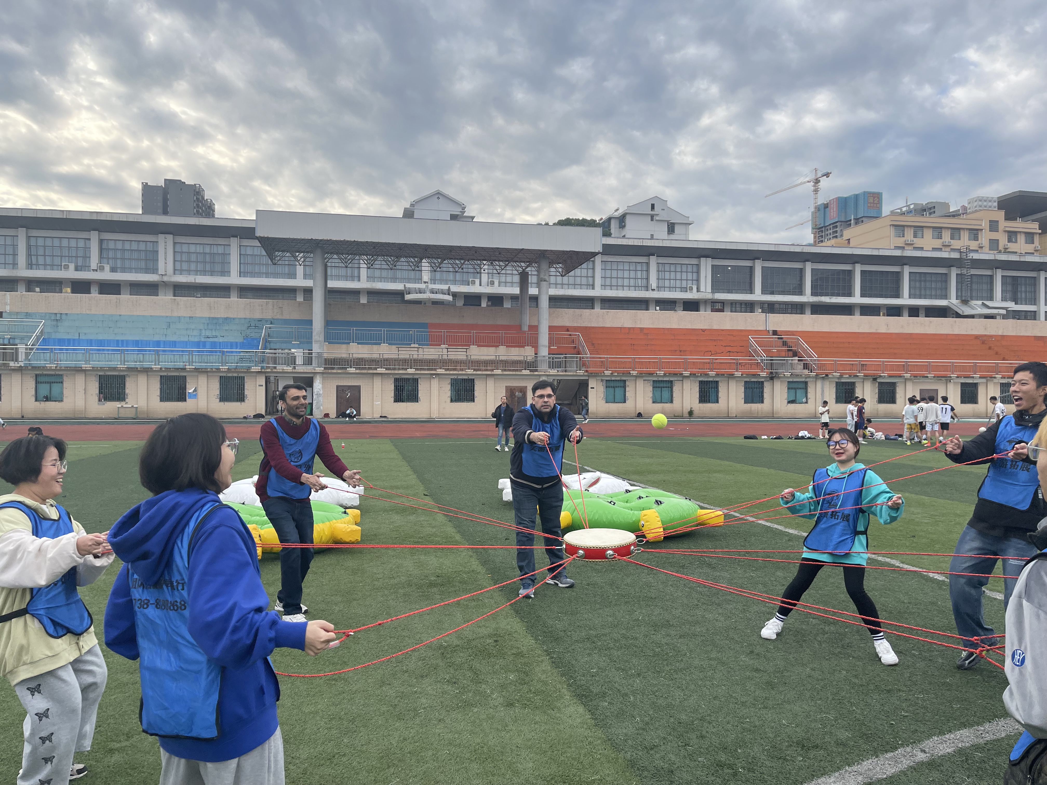龟兔赛跑”、“你划我猜趣味性游戏环节促进师生之间倾听沟通能力以及团队协作能力。国境外教师学生们互换思路,彼此交流心得,一个个游戏环环相扣,让这场团建活动点燃了中西方教育文化的火种,迸发出了不一样的激情