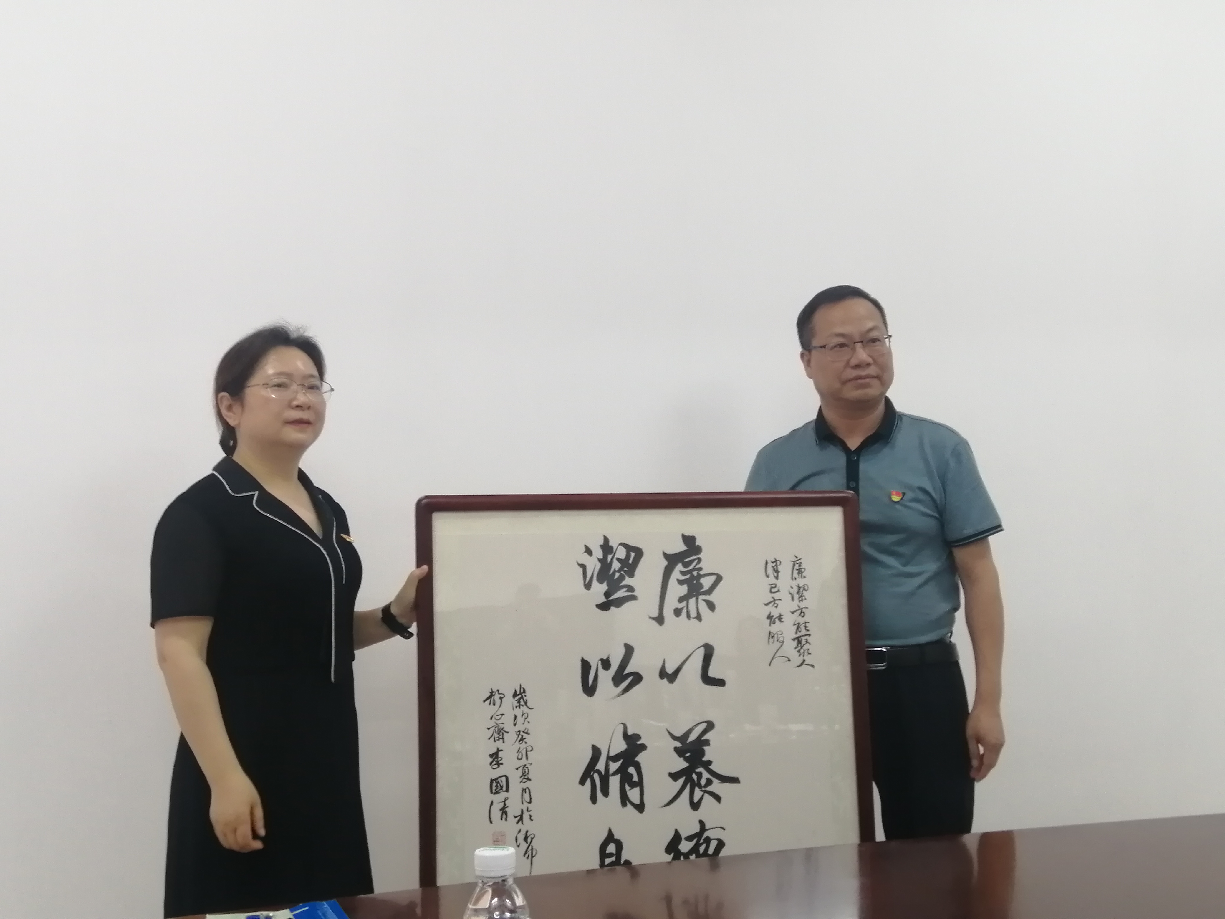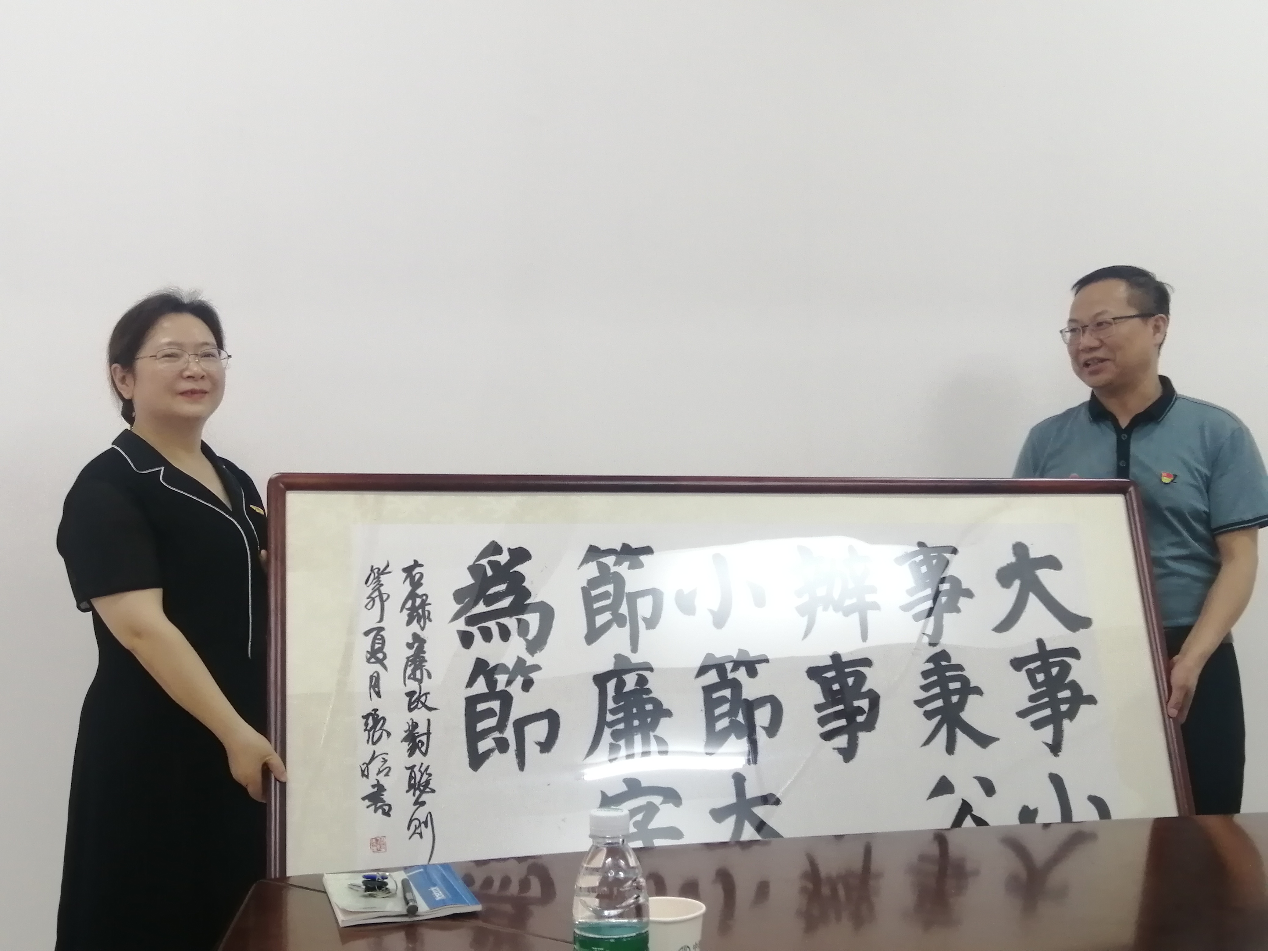 会后,凌艳平同志向我处赠送了由美术与设计学院师生创作的廉政警句书法作品。
