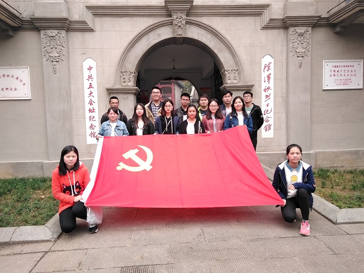 1927年4月27日至5月9日,中共第五次代表大会在武汉召开,陈独秀、毛泽东、董必武等82名代表出席。怀着崇敬的心情,大家在会址工作人员的带领和讲解下,参观了中共五大会议旧址、中共五大历史文物陈列展览,看到了党领导群众翻身求解放的艰辛历程,让同学们真切地感受到了那段峥嵘的岁月,感受当时的革命氛围,并在党旗下重温入党誓词,提醒不全体学生党员忘初心、牢记使命,牢记党员身份,树立“四个意识”,坚定“四个自信”。在参观结束后,学生支部副书记冯诗茗要求全体学生党员在接下来的时间要深刻学习领会十九大的精神,结合自己的专业与爱好明确奋斗目标,做好大学规划,把十九大的精神学以致用。
