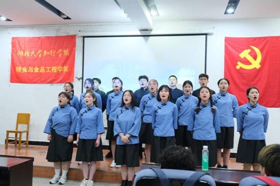 大会伊始,由党支部书记祝方清老师为优秀学生党员颁奖,党支部副书记冯书祥老师为优秀入党积极分子与党史知识竞赛获奖同学们颁奖。学生支部成员表演了朗诵《红船,从南湖起航》红色经典篇目,歌曲 《九儿》与大合唱《歌唱祖国》、话剧《解忧亦解“疫”》等精彩表演,为同学们献上了来自两个年代的时代精神盛宴,表达对党和祖国的忠诚信仰和美好祝福,引起了在场同学们的深深共鸣。