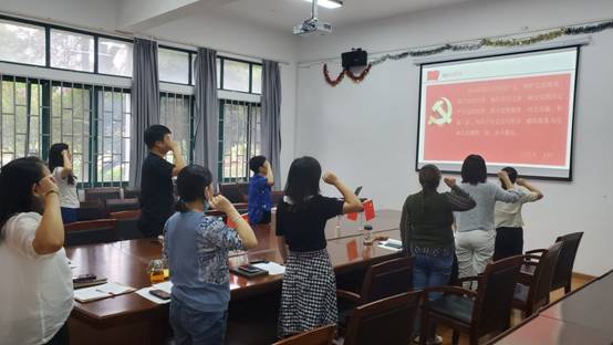 全体党员积极响应,依次有序地参与到党费收缴的现场活动中来。在鲜红的党旗下,院团委书记张忠萌老师带领大家面对党旗重温入党誓词,全体党员举起右手、握紧拳头,坚定决心、庄严宣誓。
