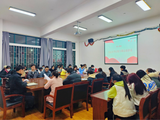 学院党总支书记祝方清对支部2022年度工作和述职评议会开展进行了点评。祝书记首先肯定了学生党支部去年的工作,强调学生党员的教育和管理是否落实至关重要,并针对2023年支部工作提出五个建设性意见。第一,发挥组织生活会最大作用,认真开展批评与自我批评,加强党性修养、增进思想交流、强化党内监督、增强组织活力;第二,加强对预备党员的考察,严守转正关,对党员进行及时教育,保证党员质量,形成有战斗力的党组织;第三,学生党支部要有目标管理,要制订学生党员日常行为规范,在同学中切实起到表率作用,增强对纪律规矩的敬畏感;第四,支部要加强制度建设,开展工作要公正、公开、透明,为学生党员锻炼成长搭建平台,结合实际和专业特色举行实践性活动,发挥学生党员先进作用,让学生党员真正成长为学生骨干、核心,成为同学们真心拥戴的人,提升基层党组织政治功能和组织力;第五,学院党总支高度重视学生党员教育管理,将进一步加强对学生支部的指导和领导。