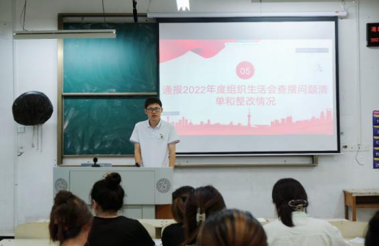 会议开始,全体党员在赵博同志的逐句领读下,齐声跟读重温入党誓词,在徐新奥同志的带领下学习党章。随后,黄丽萍同志代表支部汇报了2023上半年度党员积分情况,支部书记冯书祥对2022年度组织生活会查摆问题清单和整改情况进行了通报,同时也对支部后期建设做出了大致规划。他提出,在未来的工作中我们要加强与其他学院党支部的交流,互相取长补短。此外,他还强调,学生党员要明确自己的定位,在各方面注意自己的言行举止,关键时刻要主动承担责任,从细节上做好自我管理,要起到带头作用,发挥党员的先锋模范作用。